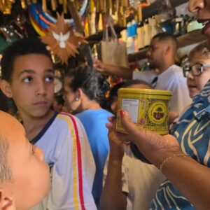 Ontem a gente teve a alegria de receber os alunos do quarto ano da Escola Marzagão. Nos nossos 26 metros quadrados couberam todos, inclusive todas as curiosidades sobre a nossa história, produtos típicos e também do nosso saudoso Juculau, o Juca Bico Doce. O Pedro, quinta geração da família Paraopeba, se divertiu com a meninada como se estivesse no recreio com eles. Bom demais essas vivências. Uma troca onde todos aprendem, inclusive a gente.